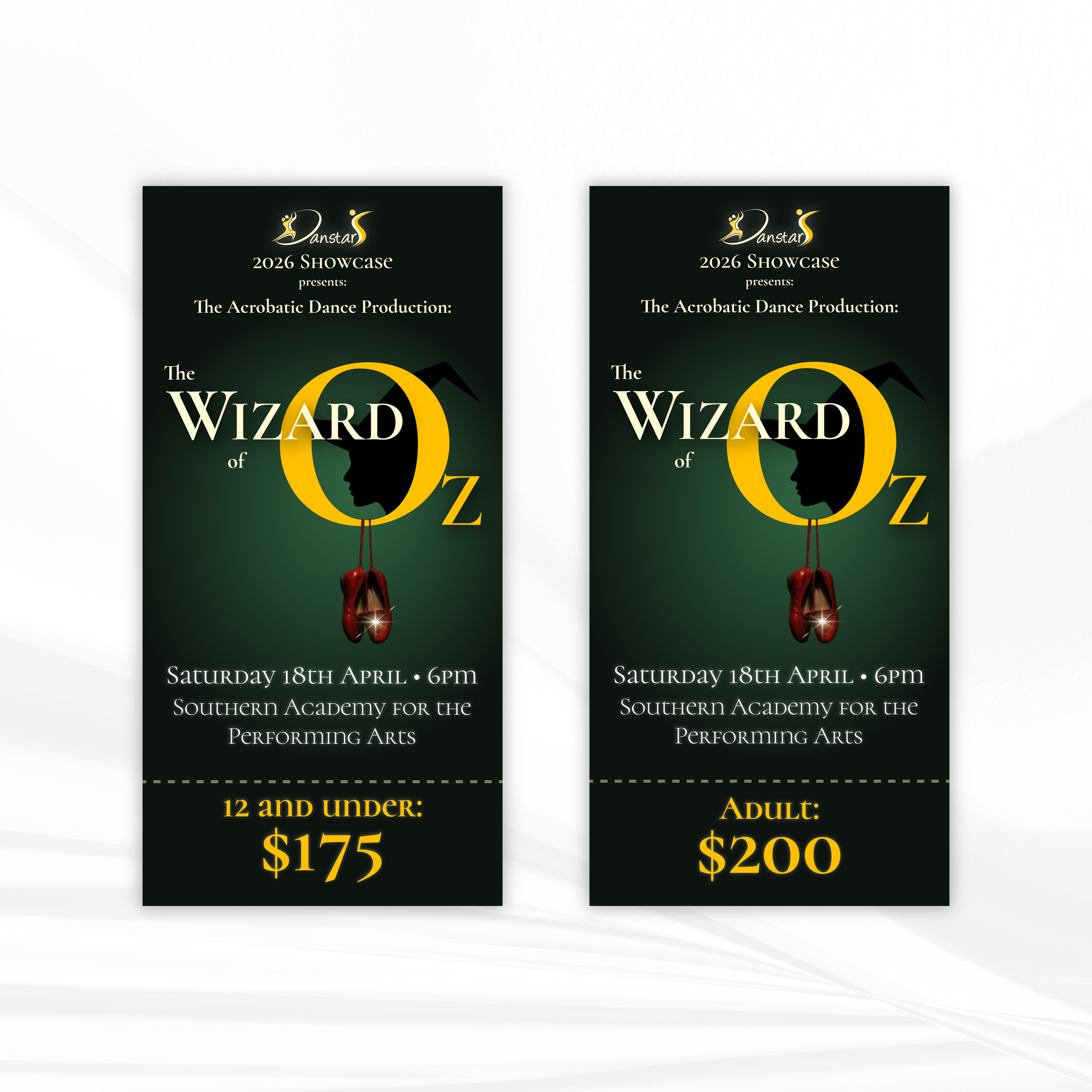 Graphics and tickets for a live showcase.